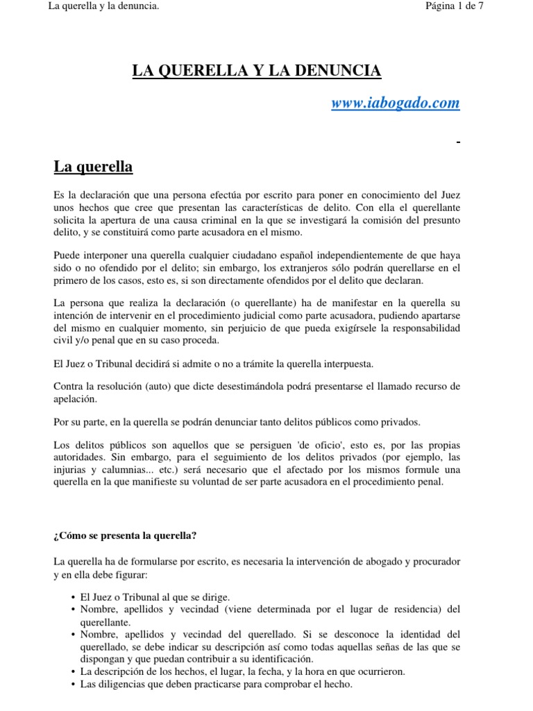 Respecto de la incardinación de la conducta del querellado en el delito previsto y penado en el art. Escritos Judiciales LA QUERELLA CRIMINAL Dr. La querella es una declaración de voluntad por la que se manifiesta formalmente ante un órgano jurisdiccional la intención de constituirse en parte acusadora en un proceso penal para la persecución de unos hechos que se estiman constitutivos del delito o falta. La querella como iniciación del proceso penal - Derecho UNED. Prescrito en los artículos 193 y 269 bis del Código Penal artículos 111 y siguientes del Código Procesal Penal y demás normas legales pertinentes A VS. La querella es la expresión de la voluntad de la víctima u ofendido o de quien legalmente se encuentre facultado para ello mediante la cual manifiesta expresamente ante el Ministerio Público su pretensión de que se inicie la investigación de uno o varios.