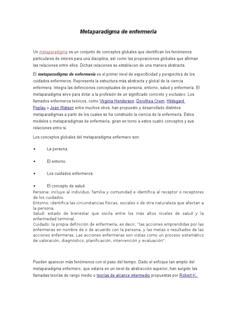 AVANCES EN ENFERMERIA VOL 30_2indb 97 190213 1633. Metaparadigma y teorización actual e innovadora de las teorías y. 29 Sep LUCIA ARANDA. Para aprender más vea nuestra política de privacidad. La clasificación de los modelos y las teorías de enfermería partiendo del paradigma referente - Metaparadigma. Jean Watson - Teoría de auto-cuidado.