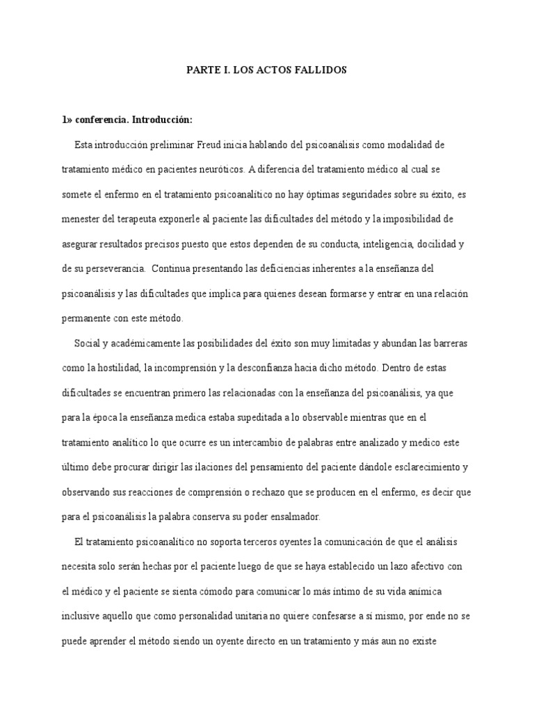 Resumen Conferencias Introduccion Al Psicoanalisis Pdf Psicoanalisis Psique Psicologia
