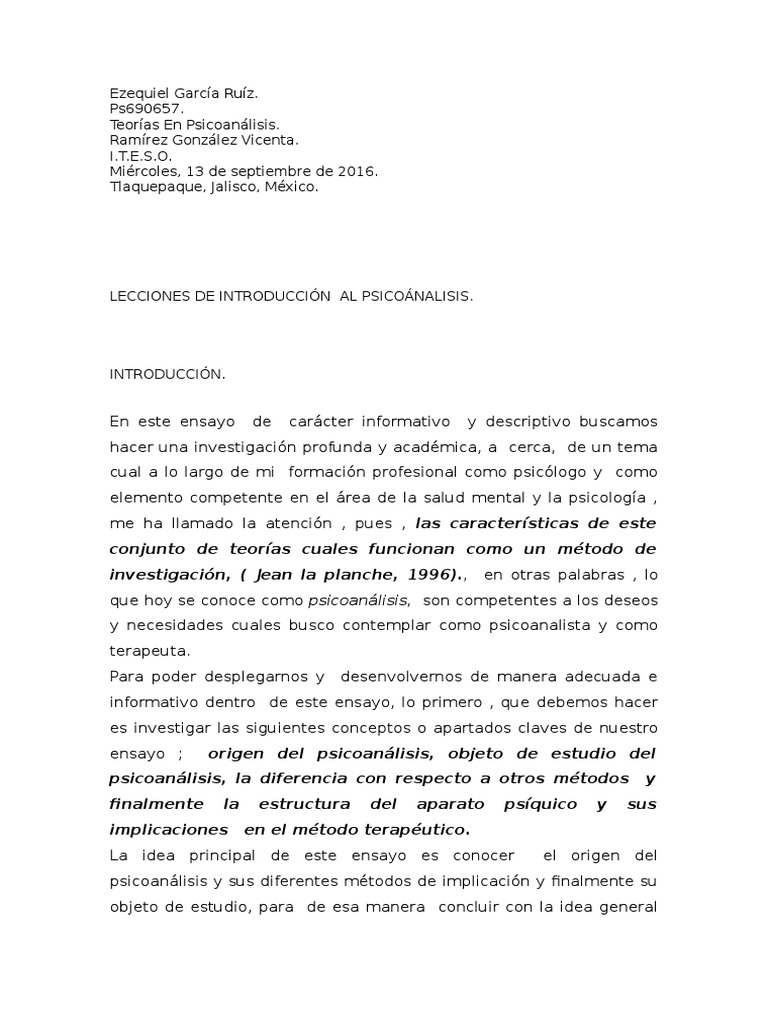 Ensayo Introduccion Al Psicoanalisis Pdf Psicoanalisis Sigmund Freud